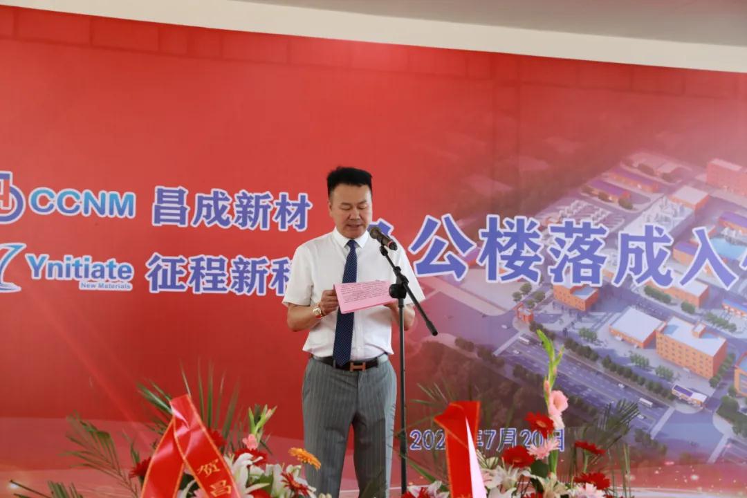 8時(shí)38分,鞭炮齊鳴,掌聲陣陣,昌成新材董事長李成金先生、征程新科董事長王瑞民先生共同為辦公樓揭幕。